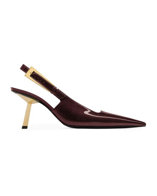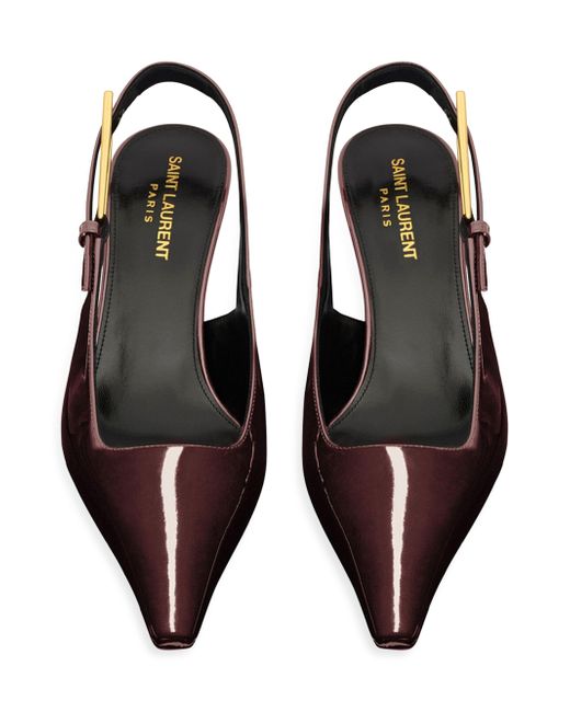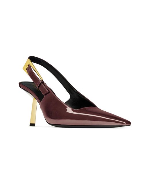 Slingback pumps with a square pointed toe and gold-plated geometric stiletto heel, featuring a square-cut vamp and adjustable buckle slingback strap. Leather sole Adjustable slingback strap Total heel height: 7.5 cm / 3 inches Made in Italy. Lsd Handbags - Saint Laurent > Saint Laurent > Saks Fifth Avenue > Barneys. Saint Laurent. Color: Marron Glace. Size: 6.