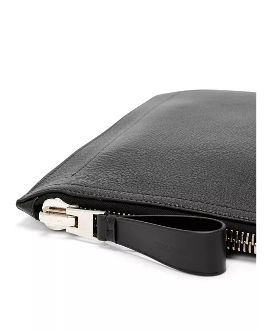 black calf leather grained texture top zip fastening wrist strap gold-tone hardware main compartment