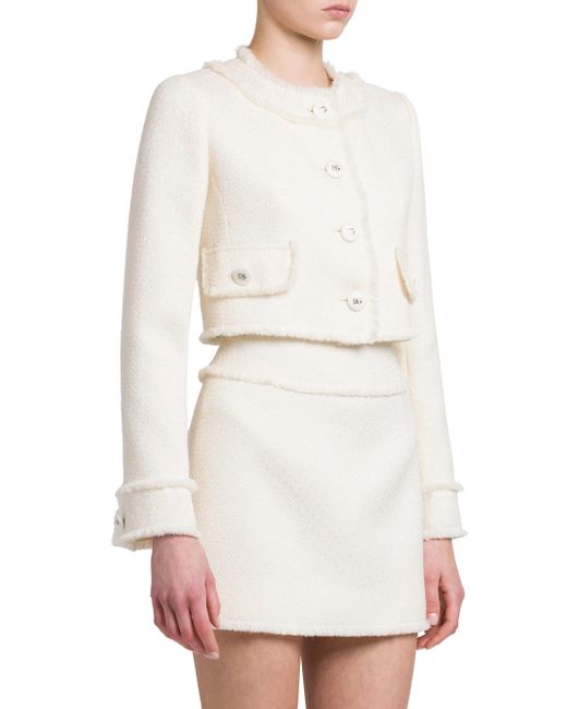 Women's White Wool-Blend Tweed Cropped Jacket