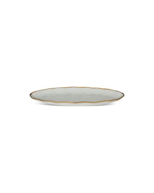 Elevate any meal with this fish platter from Certified International. In premium porcelain with gold-tone trim, its oval shape is perfect for presenting an elongated entree at dinner or serving an elegant selection of hors d'oeuvres.