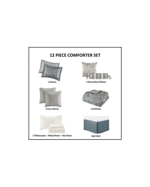 Put a dramatic finish on your bedroom's decor with the striking paisley jacquard and rich shimmering tones of this Adeline comforter set from Madison Park. The included decorative pillows add stylish depth and dimension to the ensemble while the crisp 200-thread-count cotton sheets provide next-level comfort.