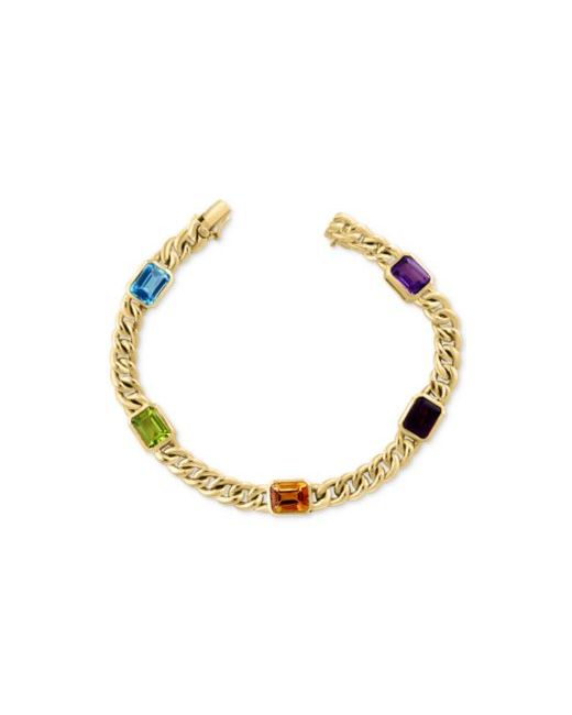 Emerald-cut gemstones of amethyst, blue topaz, citrine, rhodolite, and peridot are scattered along a polished Cuban link chain bracelet in this statement piece from Effy.