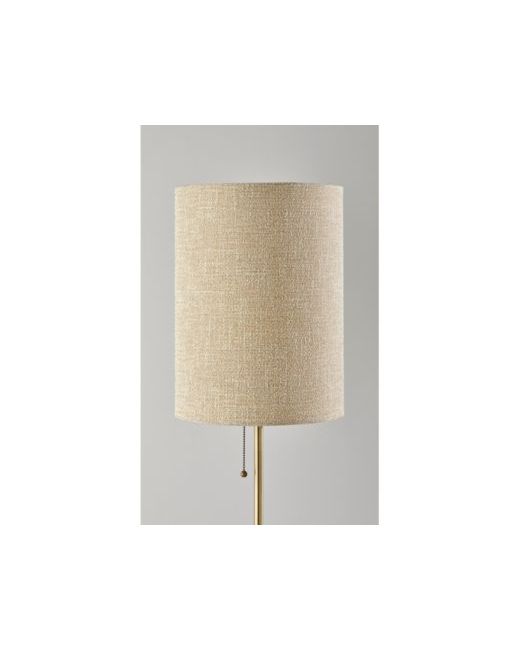 Featuring a rich blend of materials, the tucker table lamp adds refinement to desks, nightstands, and accent tables. A tapered cylindrical black marble base is an elegant accent to the simple silhouette of the lamp and supports a long tube with antique-like brass finish. Topping the lamp is a beige woven fabric drum shade that softly diffuses the light from a 100w bulb. Complete your decor with the coordinating tucker floor lamp.