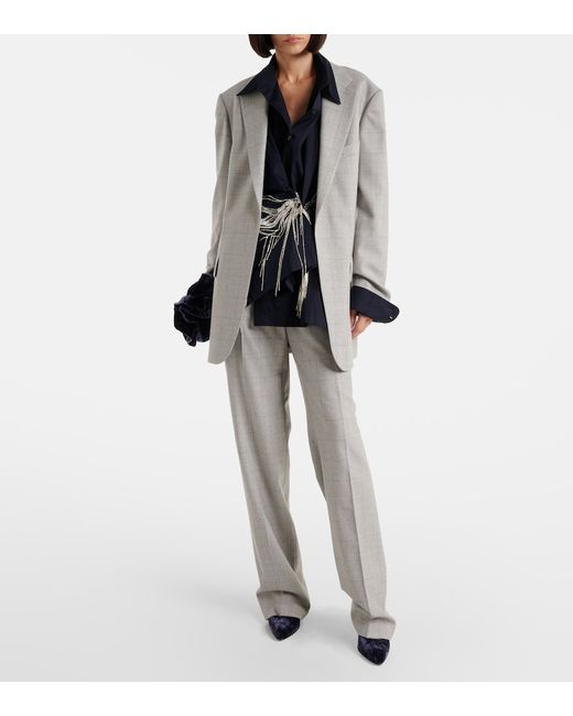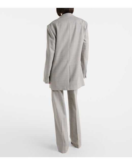 Material: 100% wool. Care instructions: dry clean. Made in Morocco. Designer color name: Light Grey. Closure: open front. Lining: 100% viscose. Pockets: breast pocket, flap pockets. Length: regular (hip-length). Sleeves: long-sleeved.