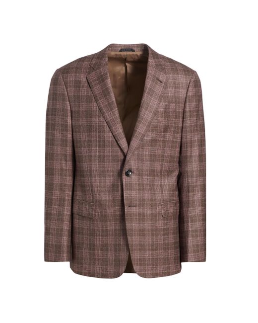 This Giorgio Armani tailored windowpane plaid wool and cashmere jacket is designed with a single-breasted silhouette. Notch lapels Long sleeves, button cuffs Chest welt pocket Side flap pockets Button-front closure 95% wool/5% cashmere Lining: 100% viscose Dry clean Made in Italy SIZE & FIT About 26" from shoulder to hem Model measurements: 6'2" tall, 40" chest, 31" waist Model is wearing a US size 40R ABOUT THE BRAND Since launching his self-named fashion empire in 1975, the Milanese designer has both revolutionized men's fashion and the fashion industry writ large. His now iconic silhouettes forged new directions in menswear. To this day, the Armani name is synonymous with an effortless, approachable Italian style that can be found in its suiting, shoes, accessories and men's fragrances. Men Luxury Coll - Giorgio Armani C > Giorgio Armani > Saks Fifth Avenue > Barneys. Giorgio Armani. Color: Copper. Size: 48.