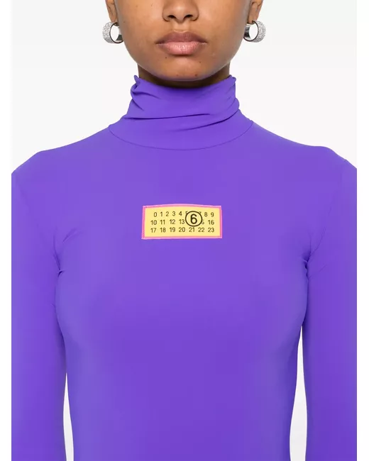 purple stretch-design press-stud fastening high neck long sleeves signature numbers motif signature single-stitch logo Just a reminder that this piece must be tried on over your own garments.