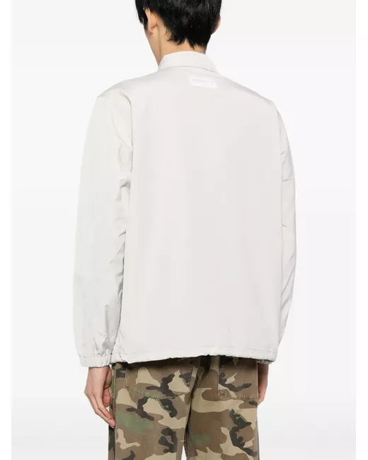 ash grey front button fastening logo patch at the chest two front button-fastening pockets adjustable waist strap logo patch at the sleeve elasticated cuffs long sleeves
