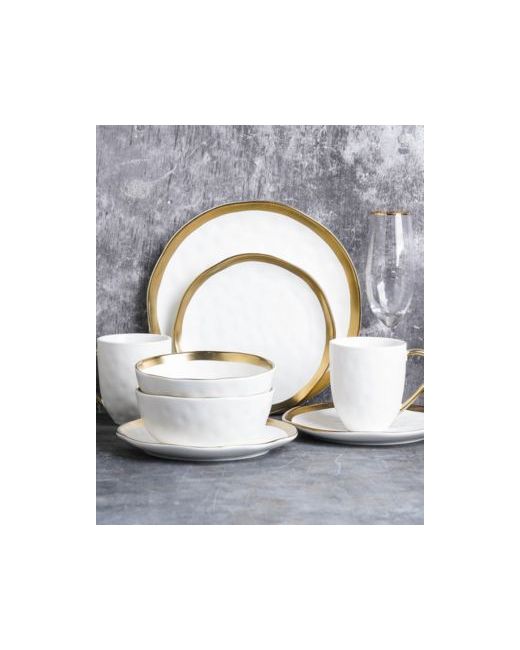 The Florian porcelain dinnerware set is perfect for those wanting a glam vibe in their kitchen or home. This Stone Lain 16 piece porcelain round dish set features a gold-tone accent. The dishes are perfect for anyone who wants to feel sleek, sophisticated or even edgy and will work nicely for both formal and casual dining. This round set includes 4 large round dinner plates, 4 classy round salad plates, 4 deep round bowls and 4 rounded 12 oz mugs. Pair this set with your favorite cutlery and cups and you are ready to plate your food for a fun dining experience. Grab a set today and experience elegant dining at home.