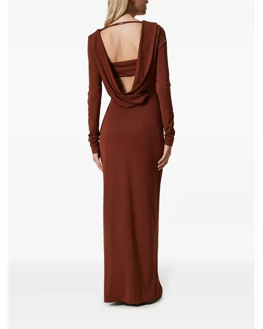 brown crepe jersey texture draped detailing at the neckline long sleeves draped back straight hem ankle-length