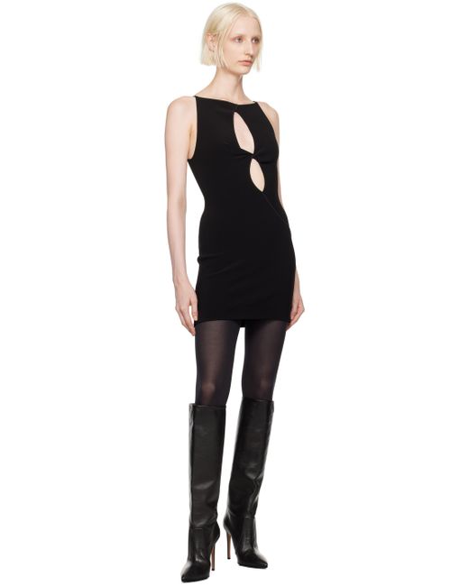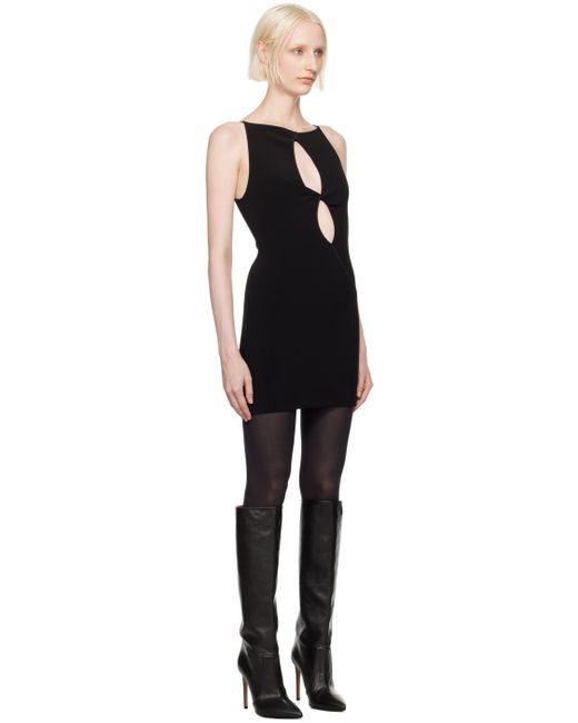 Stretch polyester crepe dress. · Boat neck · Keyhole cutout and twisted detailing at front · Concealed zip closure at back Supplier color: Black