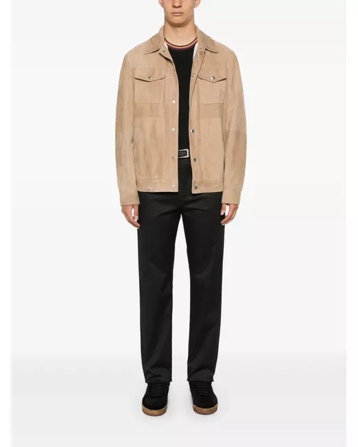 midnight blue stretch organic cotton twill weave slim cut concealed fly and button fastening belt loops two diagonal pockets to the sides two rear jetted pockets