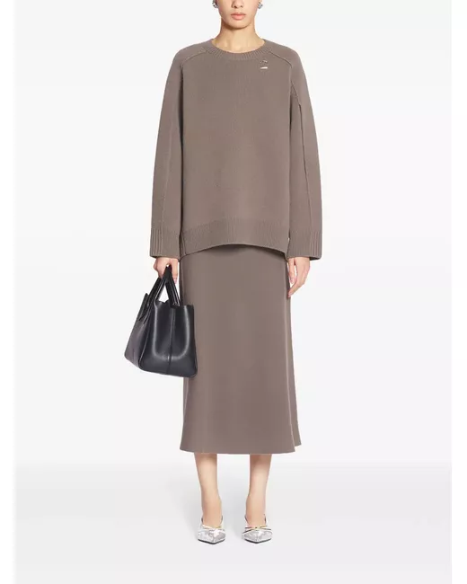 brown wool-cashmere blend oversize frame silver-tone logo plaque round neck long slit sleeves ribbed cuffs and hem