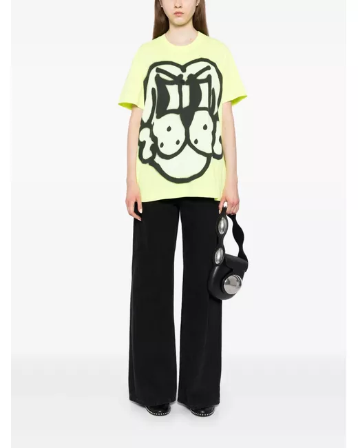 green/black cotton graffiti print crew neck drop shoulder short sleeves straight hem