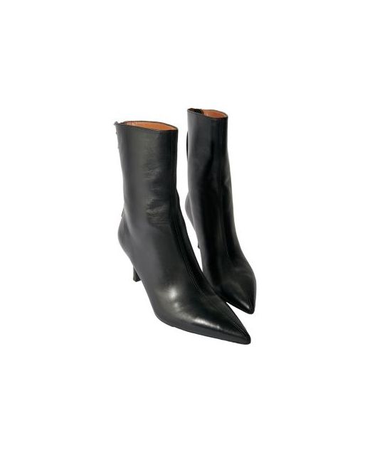 Maje Women's Faymon Pointed Toe Mid Heel Booties.Color:Black.Size:38.Material:Leather upper, lining and sole.