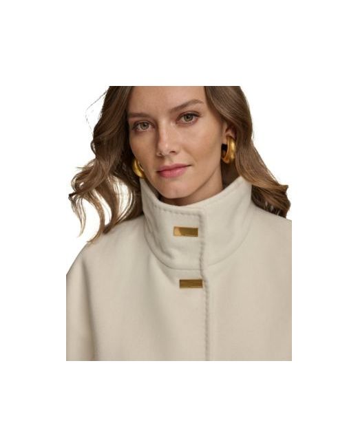 Polished gold-tone hardware and pick-stitch detailing add sophisticated touches to this handsome coat from Donna Karan New York.