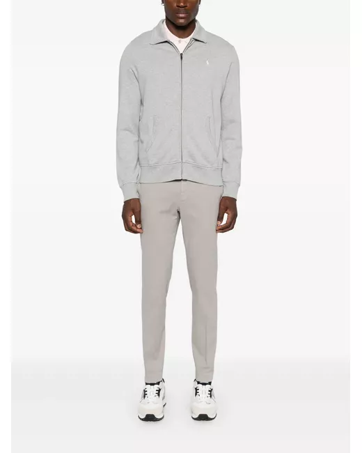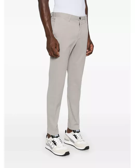 light grey cotton blend twill weave concealed fly and button fastening elasticated waistband belt loops two diagonal pockets to the sides two rear welt pockets straight leg