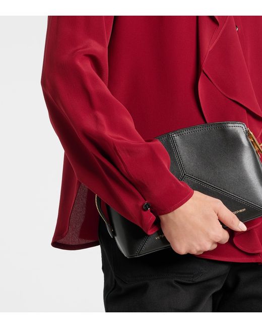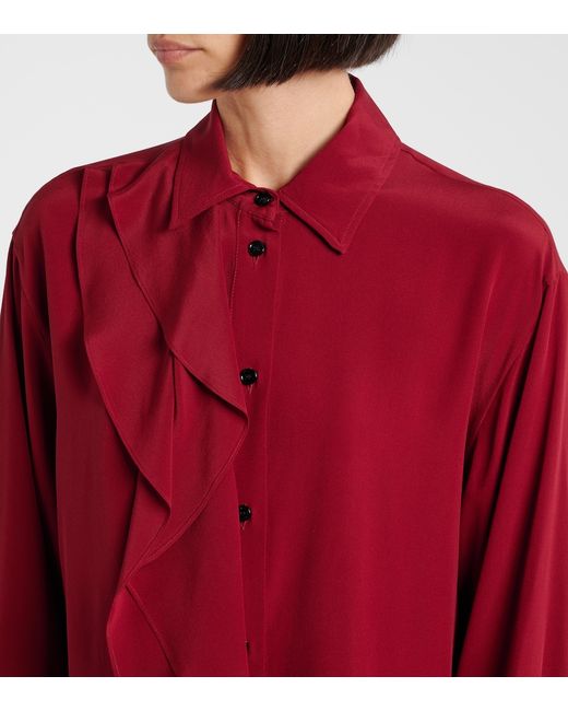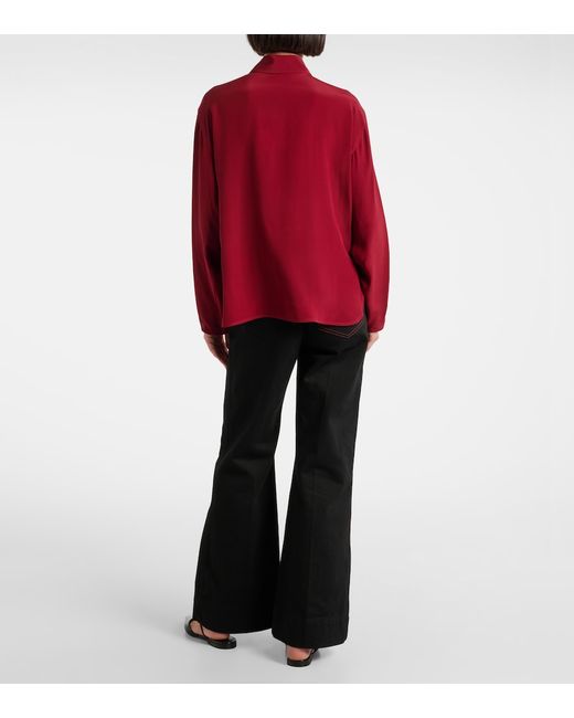 Material: 100% silk. Care instructions: dry clean. Made in Portugal. Designer color name: Oxblood. Closure: concealed buttoned front.