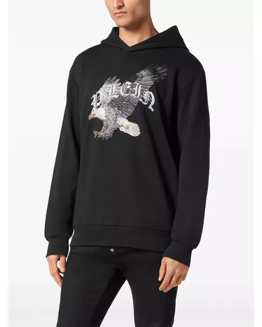 black cotton long sleeves eagle print ribbed cuffs and hem classic hood