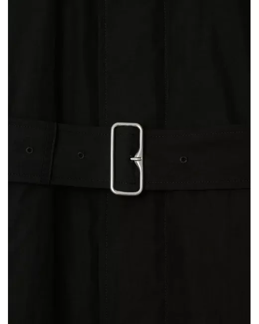 black cotton blend padded design down-feather filling front press-stud fastening classic collar long raglan sleeves belted waist logo-buckle detail two side welt pockets full lining