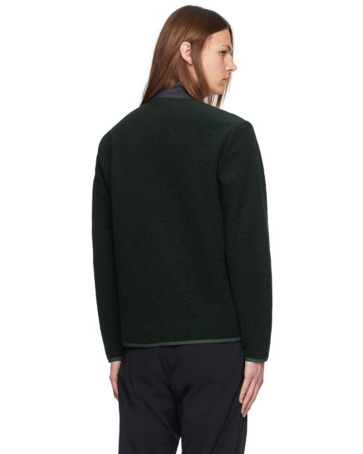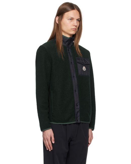 Brushed knit virgin wool- and polyester-blend jacket. · Stand collar · Two-way zip closure and button placket · Felted logo patch at flap pocket · Zip pockets Supplier color: Dark forest