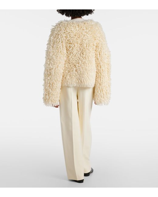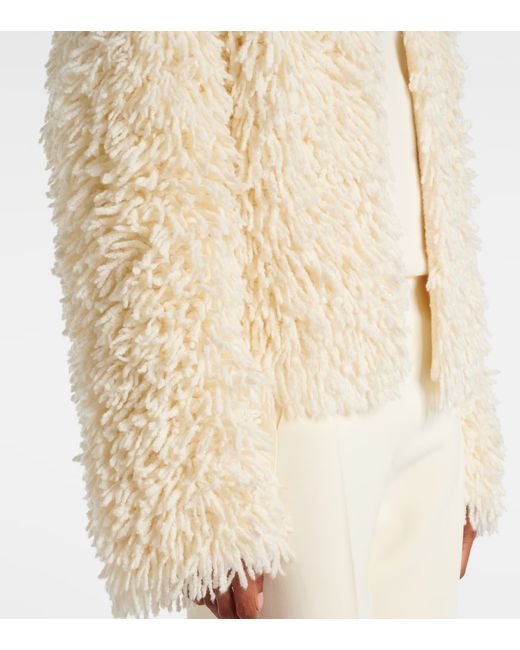 Material: 56% wool, 37% cotton, 7% polyamide. Care instructions: dry clean. Made in Italy. Designer color name: Cream. Closure: open front.