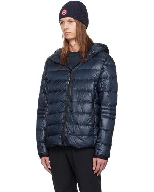 Packable down-filled and quilted nylon ripstop jacket. Water-repellent, wind-resistant, lightweight, and durable. · Bungee-style drawstring at hood and hem · Reflective trim at hood · Two-way zip closure · Zip pockets · Embroidered logo patch at sleeve · Elasticized Power Stretch® cuffs · Patch pockets at interior · Detachable elasticized shoulder straps at interior · Fully lined Supplier color: Atlantic navy Fill: 90% duck down, 10% duck feathers.