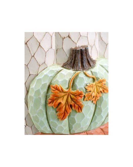 The Avanti Grateful Patch wastebasket features two stacked textured pumpkins in light orange and aqua on the front of the faux carved wood, off-white base. Made of durable, hand-painted resin. The perfect addition to any decor and any room.