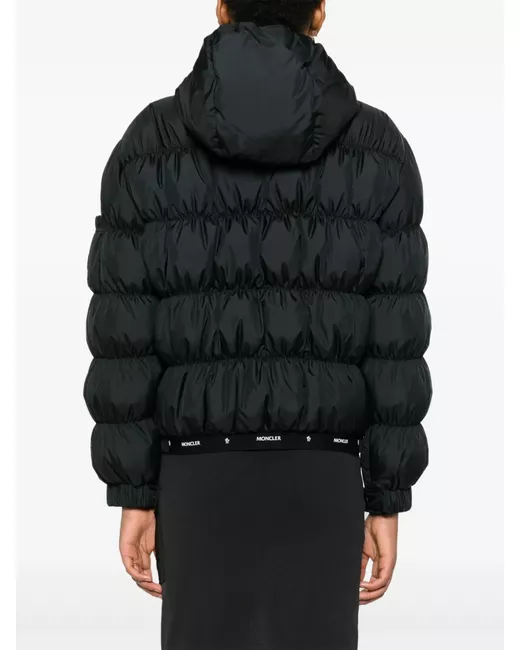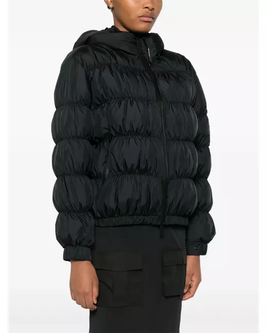 black padded design ruched detailing front two-way zip fastening classic hood long sleeves sleeve patch pocket logo patch at the sleeve press-stud fastening cuffs front zip fastening pockets full lining elasticated hem
