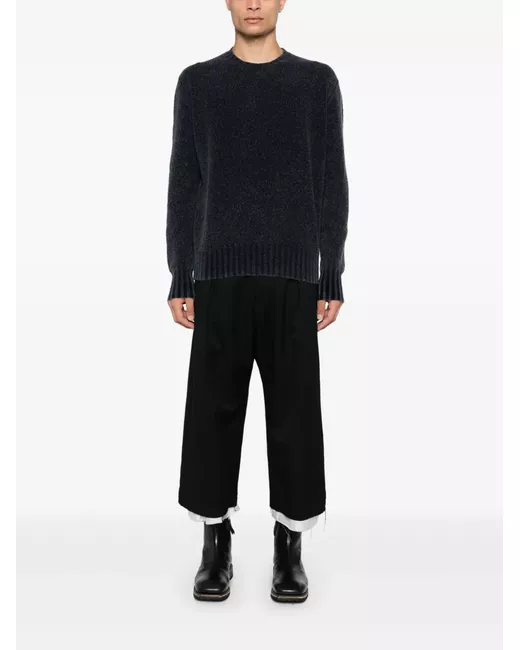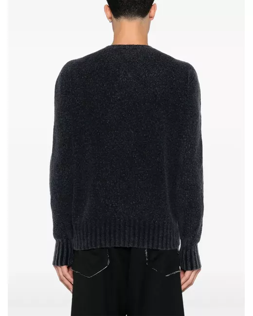 navy blue merino wool-cashmere blend knitted construction crew neck long sleeves ribbed cuffs and hem