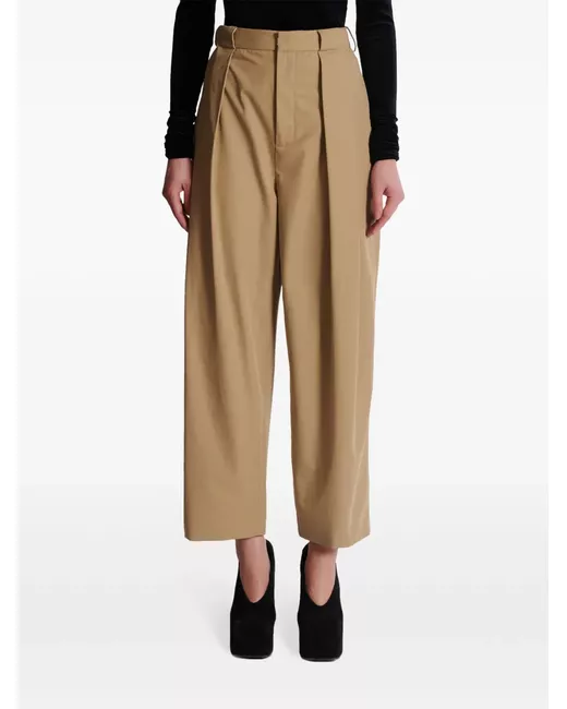 archive beige cotton pleated edge high-rise belt loops hook and zip fly fastening slip pockets to the sides two rear welt pockets