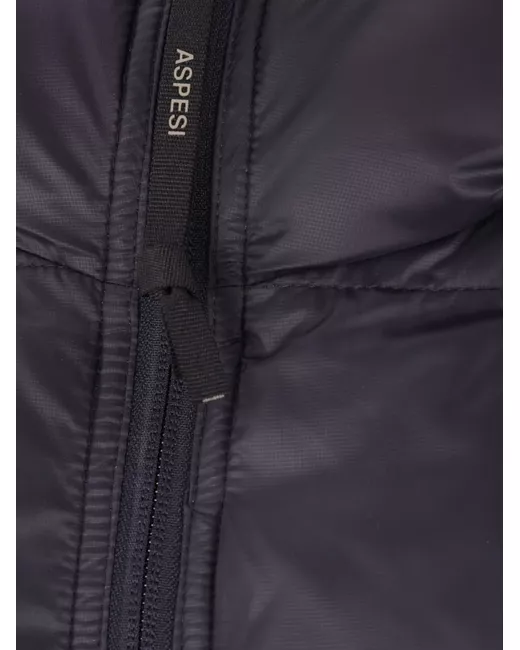 navy blue feather down padded design front zip fastening logo print to the front slouchy hood two side welt pockets long sleeves straight hem