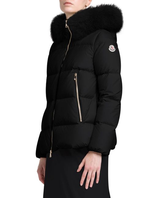 A versatile design, the Laichefur short puffer jacket features a shearling collar that can easily be removed. Made from brushed polyester Lining in longue saison Down-filled Hood Detachable shearling collar Zipper closure Pockets with zipper closure Exterior: 100% Polyester; Lining: 100% Polyamide / Nylon; Padding: 90% Down, 10% Feather; Leather with hair 1: Goat Type: Dyed Long hair goatskin Origin: China Hand wash; Do not bleach; Do not tumble dry; Ironing maximum temperature 110C - without steam; Do not dry clean; Do not professionally wet clean; Flat dry in the shade; Wash separately; do not soak; Remove detachable accessories before washing; It is advisable to wash and iron the garment on reverse.; Do not twist or wring Imported. Lsd Mens - Moncler > Moncler > Saks Fifth Avenue > Barneys. Moncler. Color: Black. Size: Large.