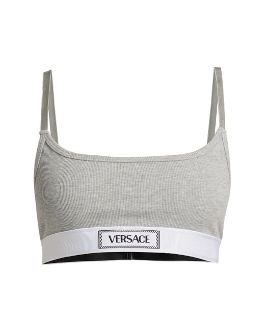Crafted of stretch cotton rib, this bralette features a scooped neck and back. A Versace logo tag at the center completes the look. Scoopneck Adjustable straps Pulls over 93% cotton/7% elastane Trim: 82% polyester/9% elastane/9% nylon Machine washable Imported SIZE & FIT Model measurements: 5'10" tall Model is wearing a US size 4 ABOUT THE BRAND Founded in 1978, Versace is instantly recognizable by the signature Medusa head logo, chosen by founder Gianni Versace for its Greek symbolism. The Italian label is known for its luxe, bold clothing and accessories-think gilding, oversized logos and punchy prints. Since taking over artistic direction, Gianni's sister Donatella Versace has maintained the brand's strong identity, with a renewed vision to give customers the ultimate freedom to express themselves. Lingerie - Designer Foundations > Versace > Saks Fifth Avenue > Barneys. Versace. Color: Grey Melanges. Size: XS.