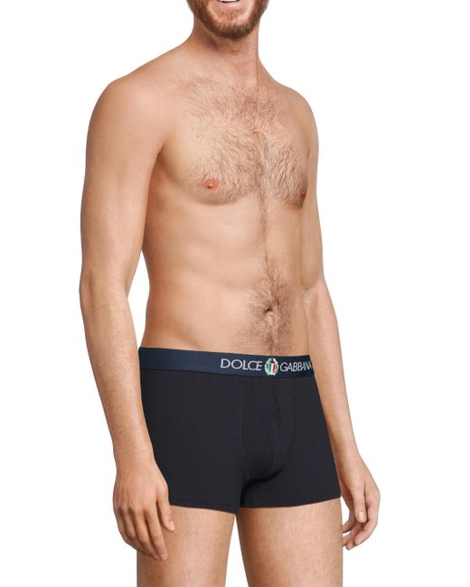 A classic Dolce & Gabbana logo defines the waistband on these boxer briefs. Crafted of stretch cotton, this comfortable style includes a contoured pouch with stitch detailing. Elasticized waistband Contoured pouch Pulls on 90% cotton/10% elastane Machine wash Made in Italy ABOUT THE BRAND Mediterranean-inspired prints and luxe silhouettes are mainstays of the Italian label, launched in 1985 by Domenico Dolce and Stefano Gabbana. The eye-catching menswear line includes a lineup of sleek clothing, shoes and accessories. Men Accessories - Underwear > Dolce & gabbana > Saks Fifth Avenue > Barneys. Dolce & Gabbana. Color: Blue Navy. Size: Small.