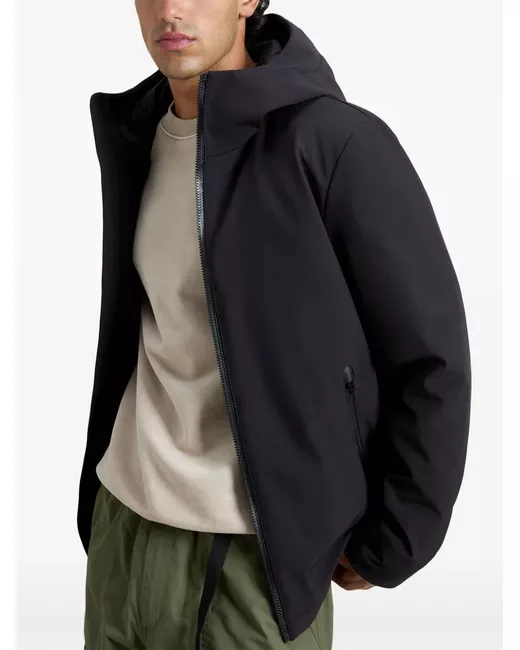 black feather down stretch-design front zip fastening high neck classic hood front zip fastening pockets long sleeves straight hem