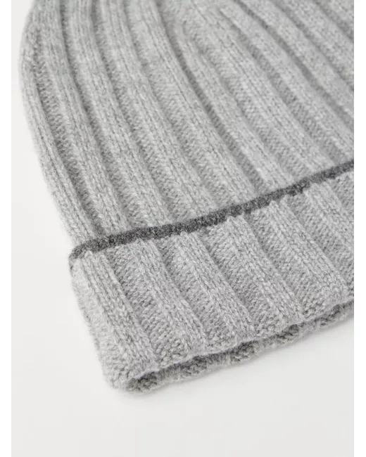 light grey cashmere ribbed knit turn-up brim pull-on style