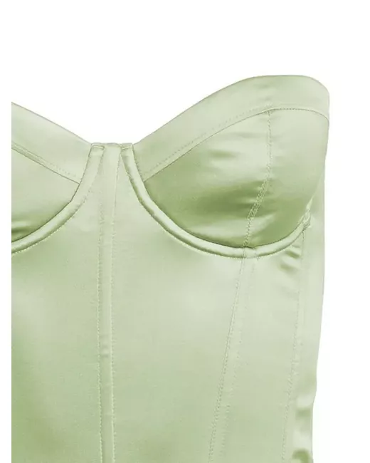 green stretch-silk bustier-style neckline rear zip fastening sweetheart neck strapless straight hem cropped