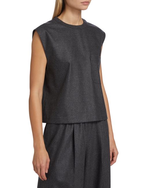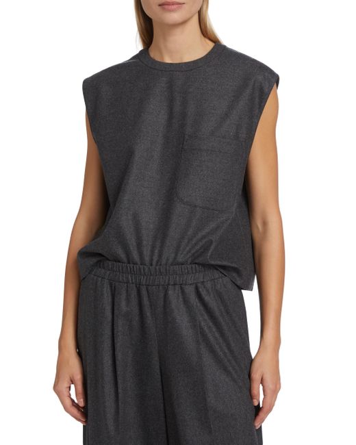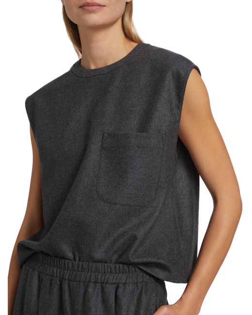 Designed to resemble a muscle T-shirt, this top from TWP is crafted of soft stretch wool and cashmere. Round neck Sleeveless Chest patch pocket Concealed back zip closure 90% wool/8% cashmere/2% elastane Dry clean Made in USA of Italian fabric SIZE & FIT About 19" from shoulder to hem Model measurements: 5'10" tall Model is wearing a US size Small ABOUT THE BRAND New York-based label TWP offers modern, effortless takes on go-to wardrobe staples. On a mission to democratize luxury, founder Trish Westcoat Pound, of Haute Hippie fame, focuses on high-quality details and subtle-yet-alluring silhouettes to create elevated, everyday pieces-all made in the U.S. with fabrics sourced from Italy. Contemporary Sportswear - Contemporary Lifestyle > Twp > Saks Fifth Avenue > Barneys. TWP. Color: Charcoal. Size: XS.