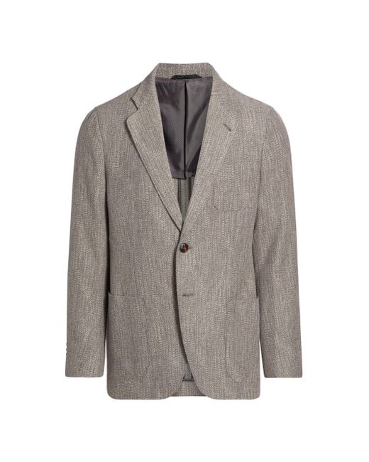 The Upton jacket from Giorgio Armani highlights a textured jacquard design. Notch lapels, patch pockets at the chest and waist, and a refined front two-button closure complete this style. Notch lapels Long sleeves, button cuffs Chest patch pocket Side patch pockets Front two-button closure 51% viscose/ 28% wool/ 14% polyamide/ 7% cashmere Lining: 55% acetate/ 45% cupro Dry clean Made in Italy SIZE & FIT Model measurements: 6'2" tall, 40" chest, 31" waist Model is wearing a US size 40R. Men Luxury Coll - Giorgio Armani C > Giorgio Armani > Saks Fifth Avenue > Barneys. Giorgio Armani. Color: Grey. Size: 40.
