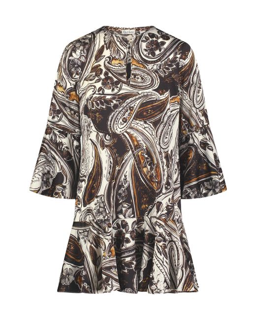 Designed with a paisley print, this Margot minidress from Robert Graham features a round neck with keyhole button closure, three-quarter-length bell sleeves, and a ruffle hem. Round neck Three-quarter-length bell sleeves Ruffle hem Front keyhole-button closure 65% ecovero/ 35% silk Dry clean Imported SIZE & FIT About 33.5" from shoulder to hem Model measurements: 5'10" tall Model is wearing a US size 4. Modern Collections - Modern Coll > Robert Graham > Saks Fifth Avenue > Barneys. Robert Graham. Size: 2.