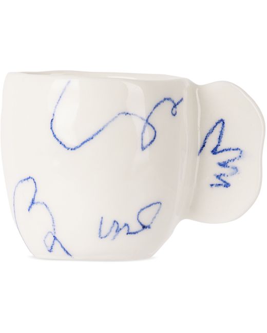 Handcrafted glossy-glazed porcelain cup in white and blue. · Graphics throughout · Artist signature and logo engraved at side · Glazed interior · Hand-wash · H2.5 x D2 Each item is unique. Please note finishings may vary slightly. Supplier color: Blue/White