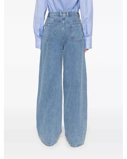 blue organic cotton-lyocell blend denim faded effect concealed fly and button fastening belt loops classic five pockets wide leg