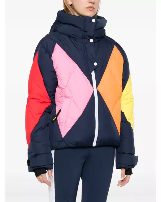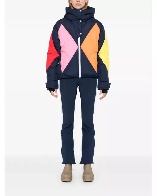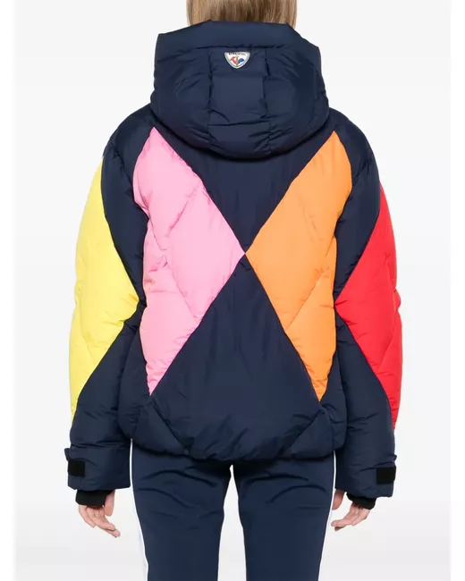 navy blue/multicolour duck down padded design diamond quilting front zip fastening classic hood appliqué logo at the hood long sleeves with touch-strap cuffs two side zip-fastening pockets full lining puffball hem