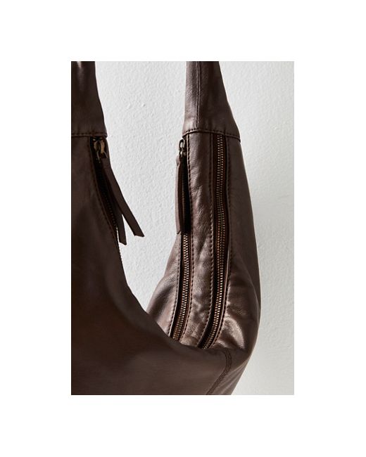 Effortless carrying in it's chicest form: this sling bag is featured in a supple leather and dramatic U-shape for a multi-wear number that can elevate any outfit. **Features:** Sling style, leather fabrication, U-shape design, adjustable shoulder strap, double zipper closure, interior zipper pocket **Why We Idle Hands Sling by FP Collection at Free People in Espresso