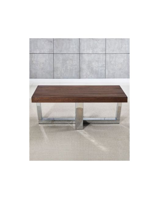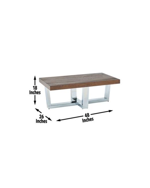 A rustic top and glam base combine in a relaxed elegant style to dress up everyday life. The substantial top and base of the Laredo creates a bold silhouette for the centerpiece of the living room. The 48 inch length allows ample room for storage with a multi-step finish that displays the grain and character of the Elm veneers beautifully while a sparkling chrome base adds a glimmering light and airy touch to the tables.