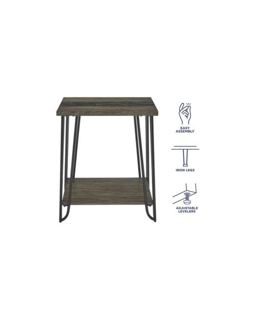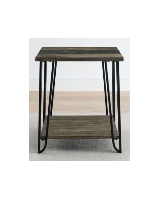 The Harper End Table is a masterful blend of casual rustic charm and mid-century modern elegance. Crafted with a distressed dark driftwood finish and a striking slate inlay, it's a mixed-media gem that anchors any living space. Its canted loop iron legs add a touch of retro flair, while the bottom shelf offers ample space for display or storage. This table is an ideal centerpiece for a casual yet modern living room, offering both style and functionality.