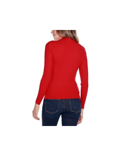 Dress to impress in this stunning long sleeved ribbed sweater featuring a zipper neckline and flattering mock neck silhouette.