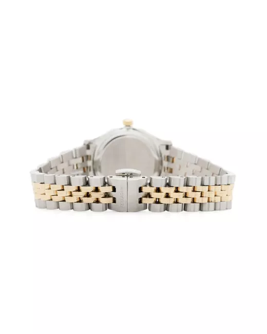 28mm stainless steel case quartz movement emerald green round face Roman numeral dial sword hands sapphire crystal screw-down crown logo print to the front day-date display adjustable link bracelet deployant-clasp fastening water resistance up to 50m/5 ATM This item comes with a standard one-year warranty from the brand. Your purchase will arrive with a gift box.