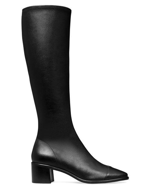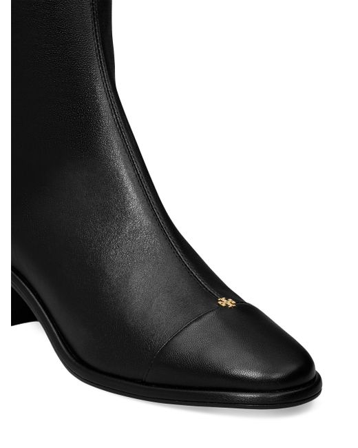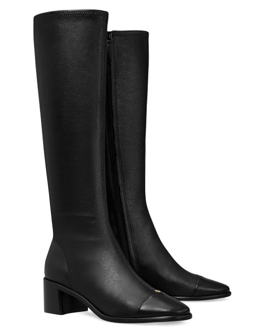 These Tory Burch cap-toe knee-high boots are crafted of leather. Cap toe Leather upper Leather lining Leather sole Imported SIZE Block heel: about 2.15" (55mm) ABOUT THE BRAND Since debuting her brand in 2004, New York-based designer Tory Burch has made an impact on the fashion world with her handbags and shoes, and playful-yet-polished clothing. Today, Burch remains inspired by color and travel, with her vibrant collections bursting with prints, and her instantly recognizable double-T logo drawing from Moroccan architecture. Womens Shoes - Tory Burch Womens Shoes > Tory Burch > Saks Fifth Avenue > Barneys. Tory Burch. Color: Perfect Black. Size: 7.5.