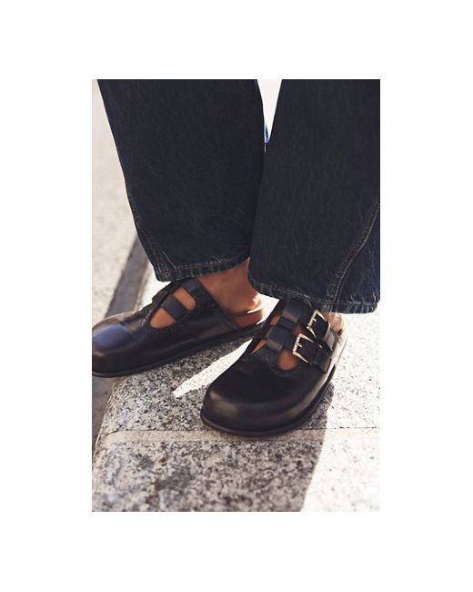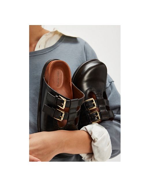 Timeless details meet a modern silhouette with these elevated mules, featured in sweet Mary Jane-inspired T-strap design and polished leather for a classic touch. **Features:** Slip-on style, backless design, polished leather uppers, round toe, T-strap design with two buckle straps, perforated details, cupsole **Why We Shoreditch Buckle Mules by FP Collection at Free People in Espresso, Size: US 6.5